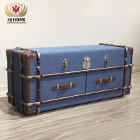 HJ HOME Loft Industrial Steam English Belted Coffee Table Trunk Luxury Handmade Accent End Table Nightstand
