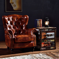 Code 766 Single Sofa Chair Classic Wax Leather Chesterfield Hotel Couch Furniture