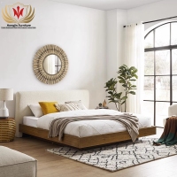 HJ HOME Nordic Wabi-sabi style queen size bed frame hotel furniture solid wood plywood fabric up-holstered hotel beds No reviews yet