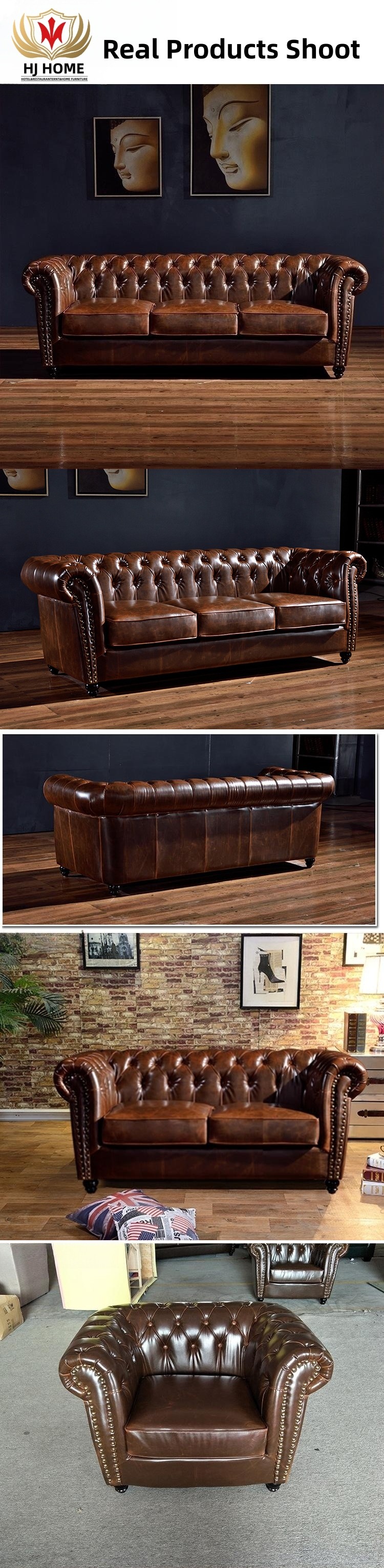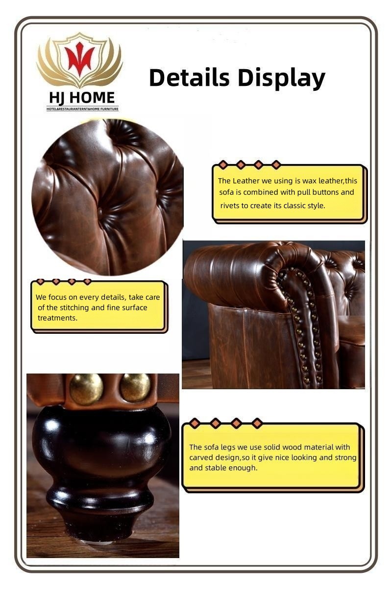 Code 766 2-Seat Sofa Classic Wax Leather Chesterfield Hotel Couch Furniture