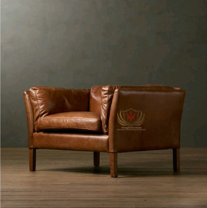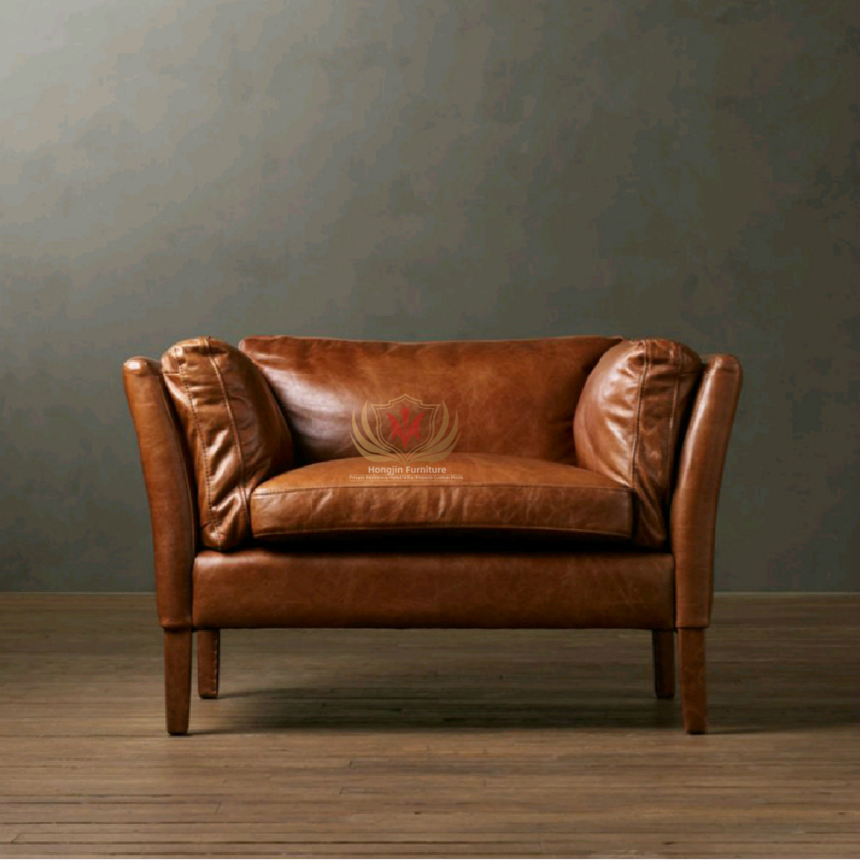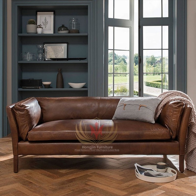 HJAMS-758 Aviator Sitting Furniture Hotel Bar Industrial Classic Cafe Sofa Set Vintage Leather Sofa
