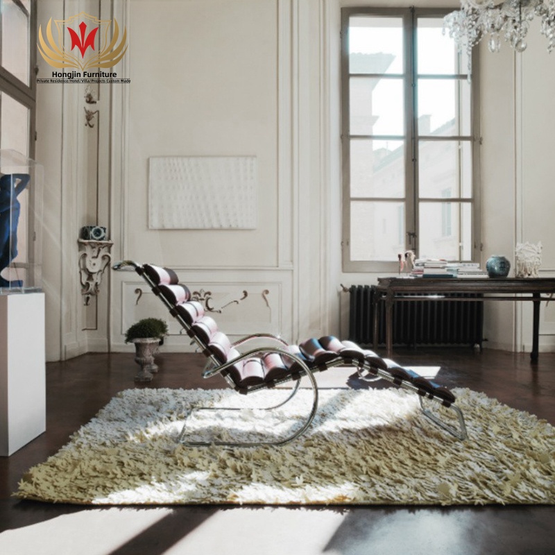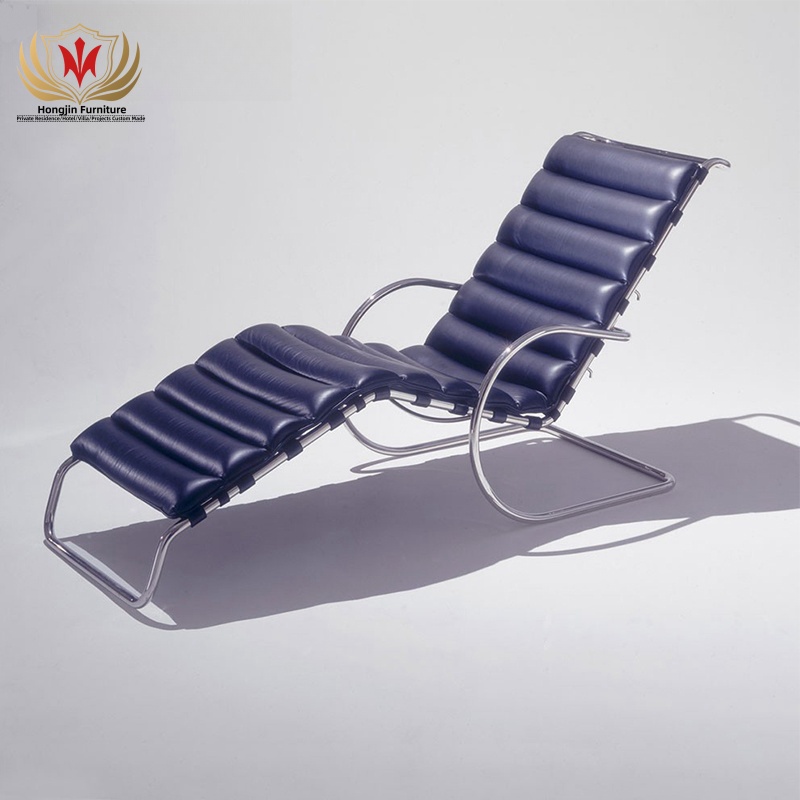 HJ HOME HJ HOME Modern Accent Chair BlueLeather High Back Support Whist Chaise Longue
