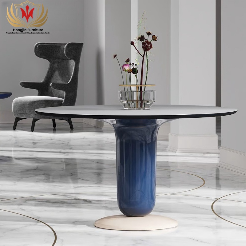 Modern Style Restaurant Round Table Durable Fiberglass Base Set 6 Seat Explorer Dining Table for Home Canteen
