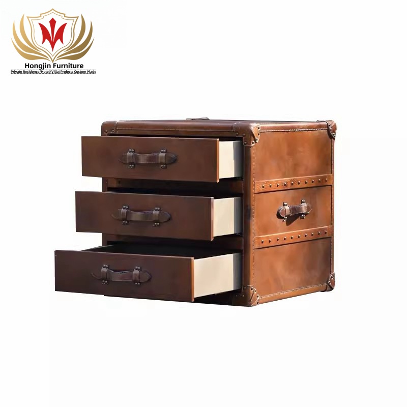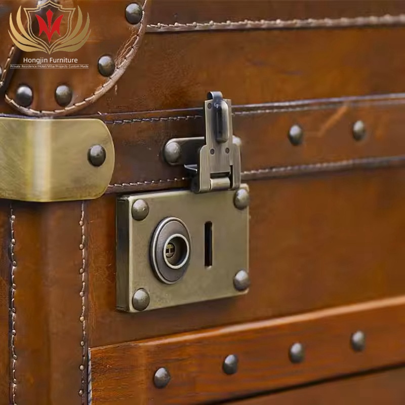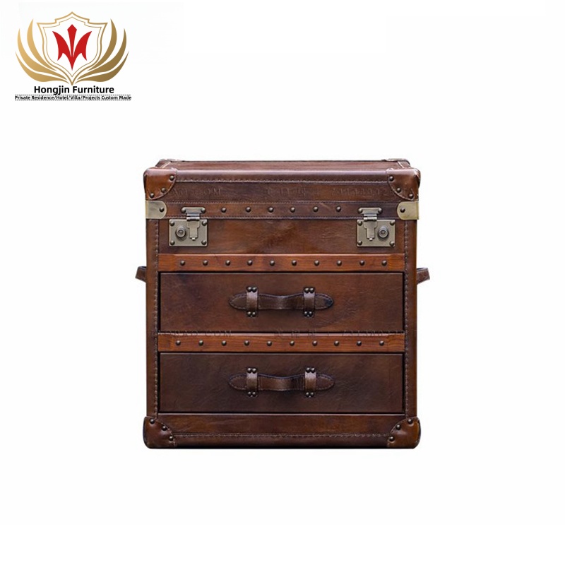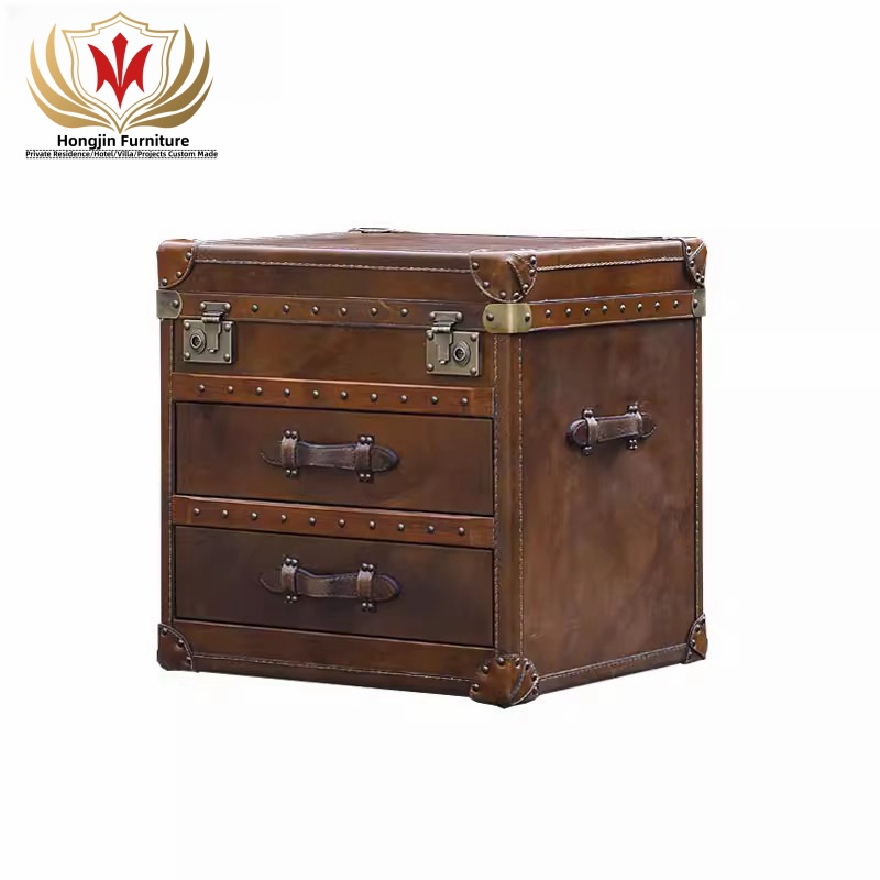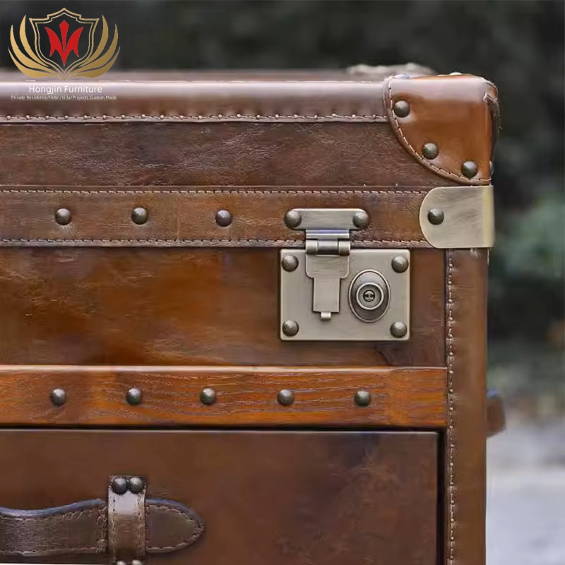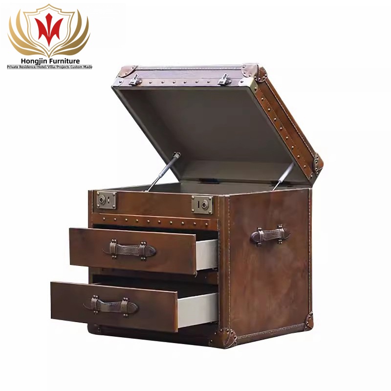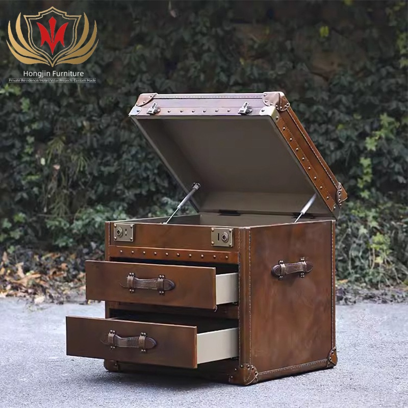 HJ HOME Loft Industrial Steam English Belted Coffee Table Trunk Luxury Handmade Accent End Table Nightstand
