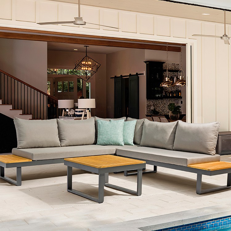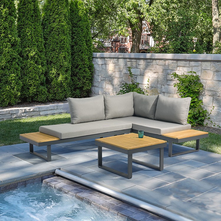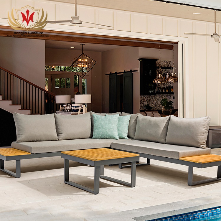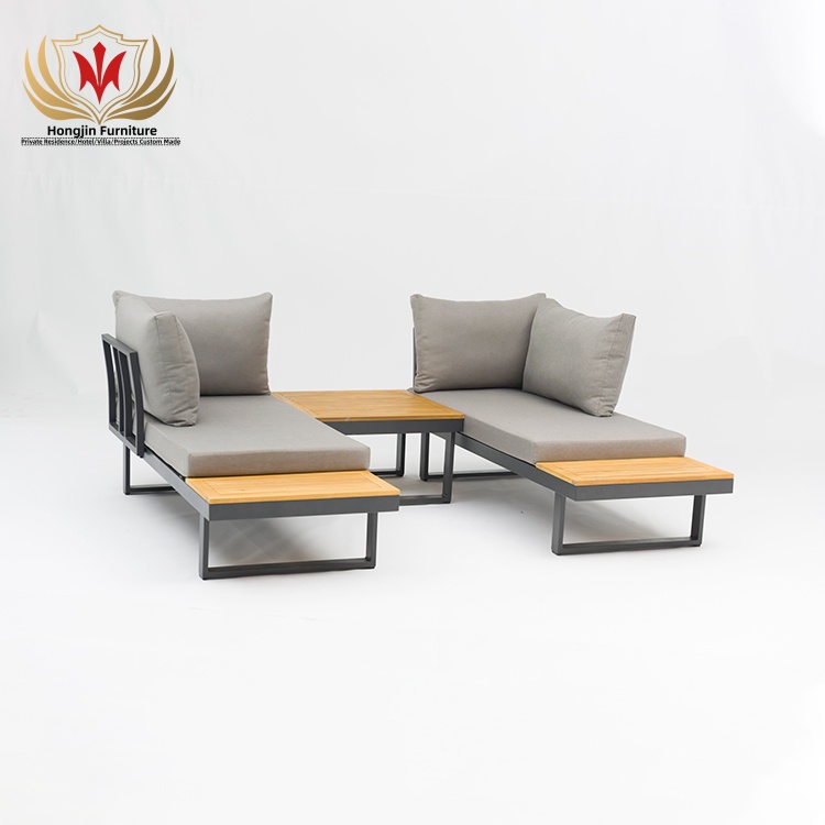 HJ HOME Modern Hotel Outdoor Modular Aluminum Sofa 3PC Patio Sun Lounger Sofa Set