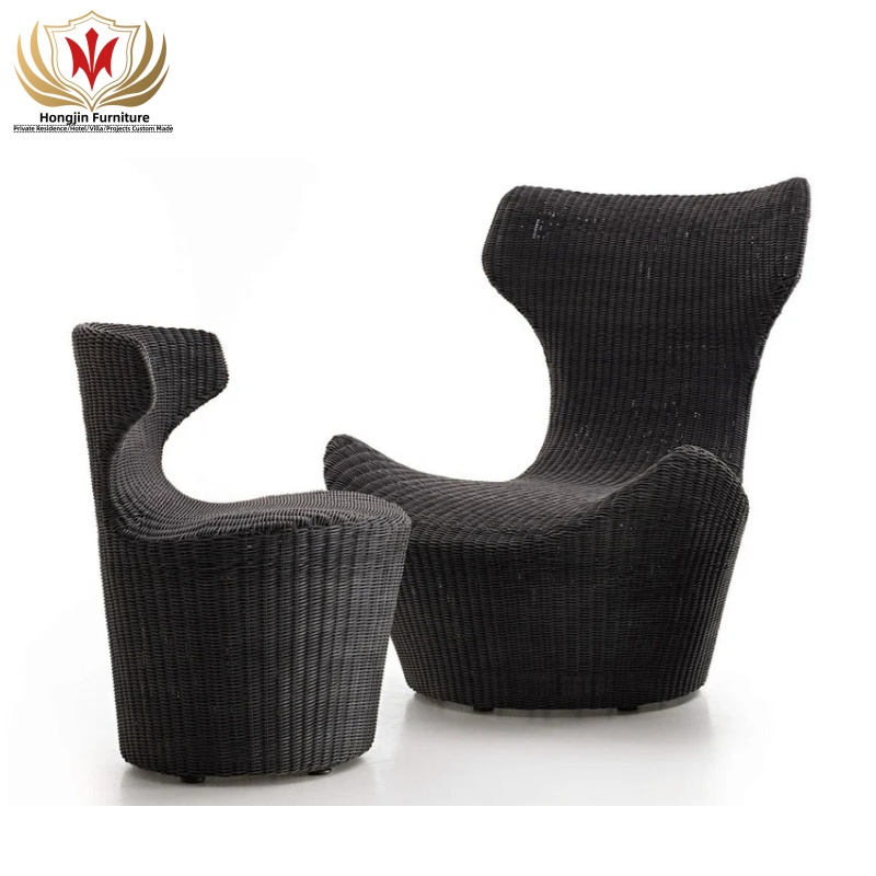 HJ HOME Factory Direct Outdoor Wicker Furniture Hotel Balcony Leisure Chaise Black Chair Patro Rattan Chair