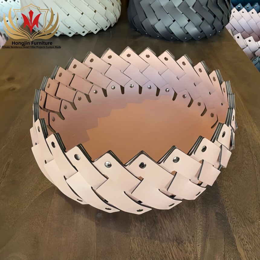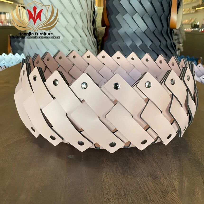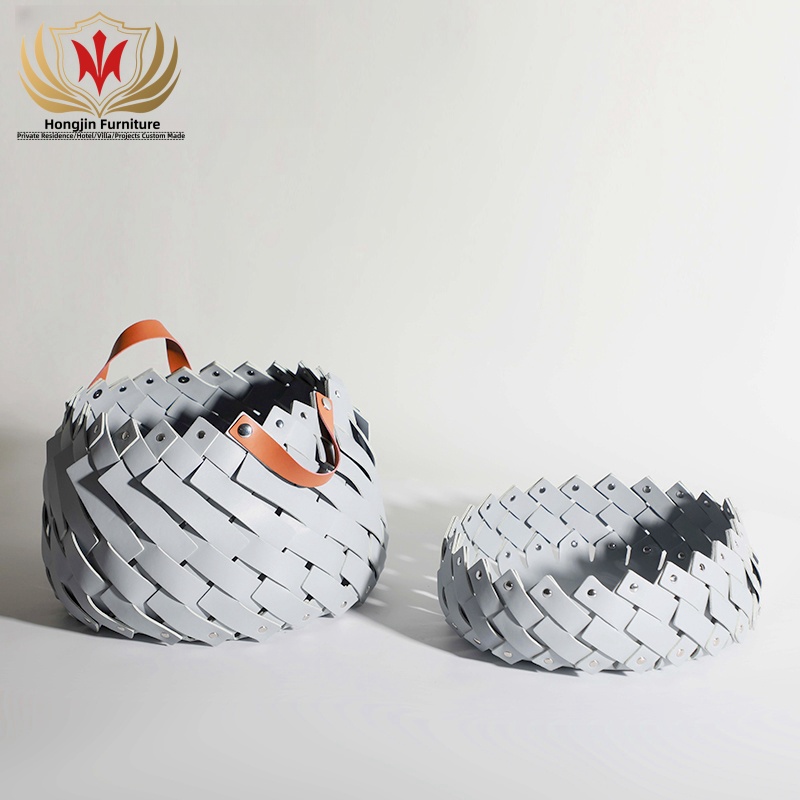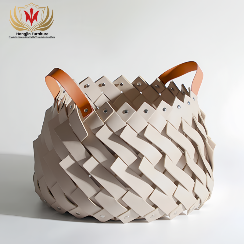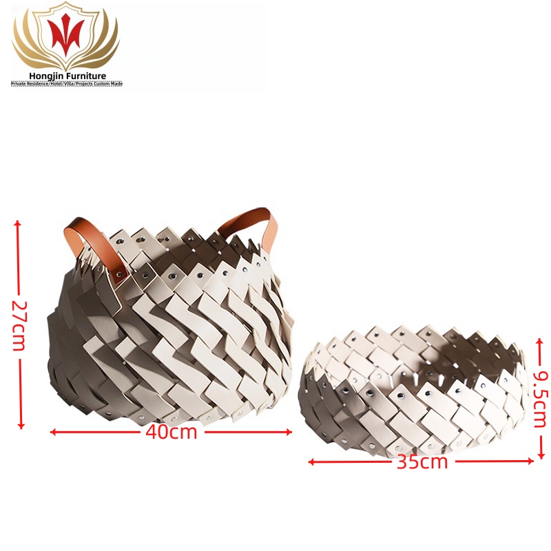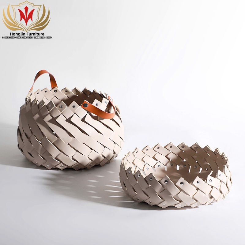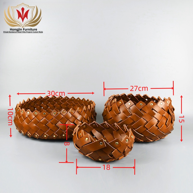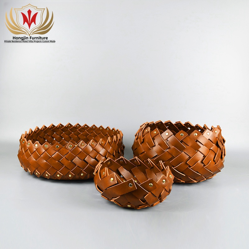 HJ HOME Luxury Leather Braided Basket Custom-made Handmade Woven Organizer Save Space Storage Home Decor