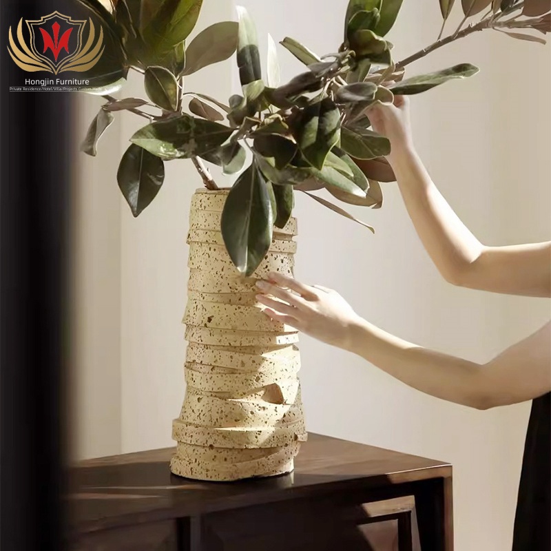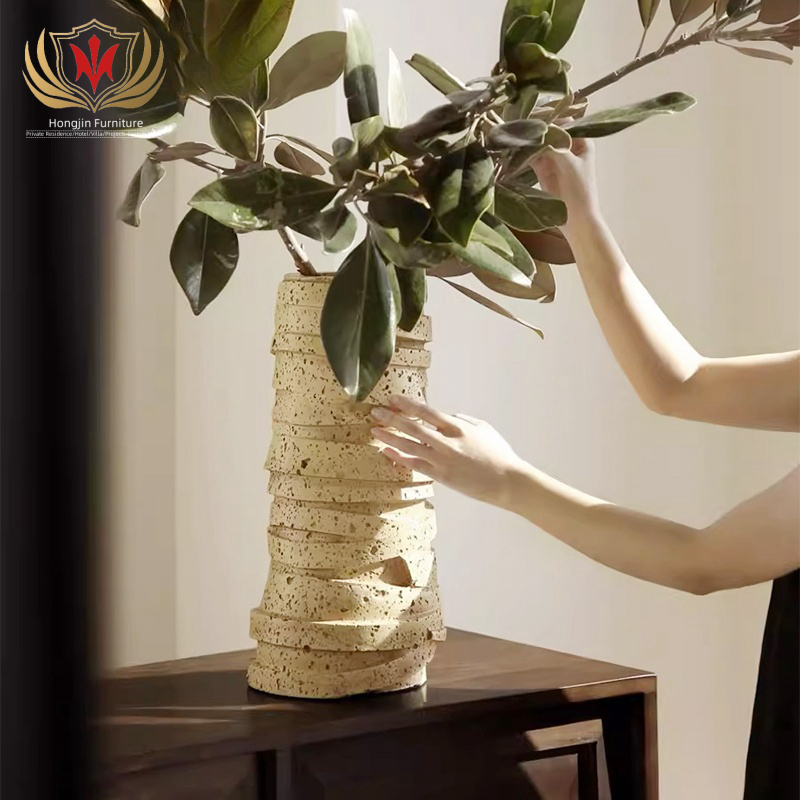 HJ HOME Wabi sabi ome living room art decor table top centerpiece vase round tall resin flower vase for home decor