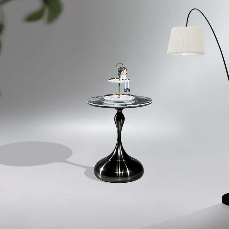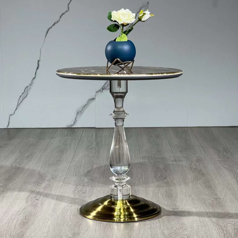 HJ HOME 2024 Nordic Tea Table White Marble Base Coffee Table Luxury Sofa Side 3D Print Marble Top Art Round Table