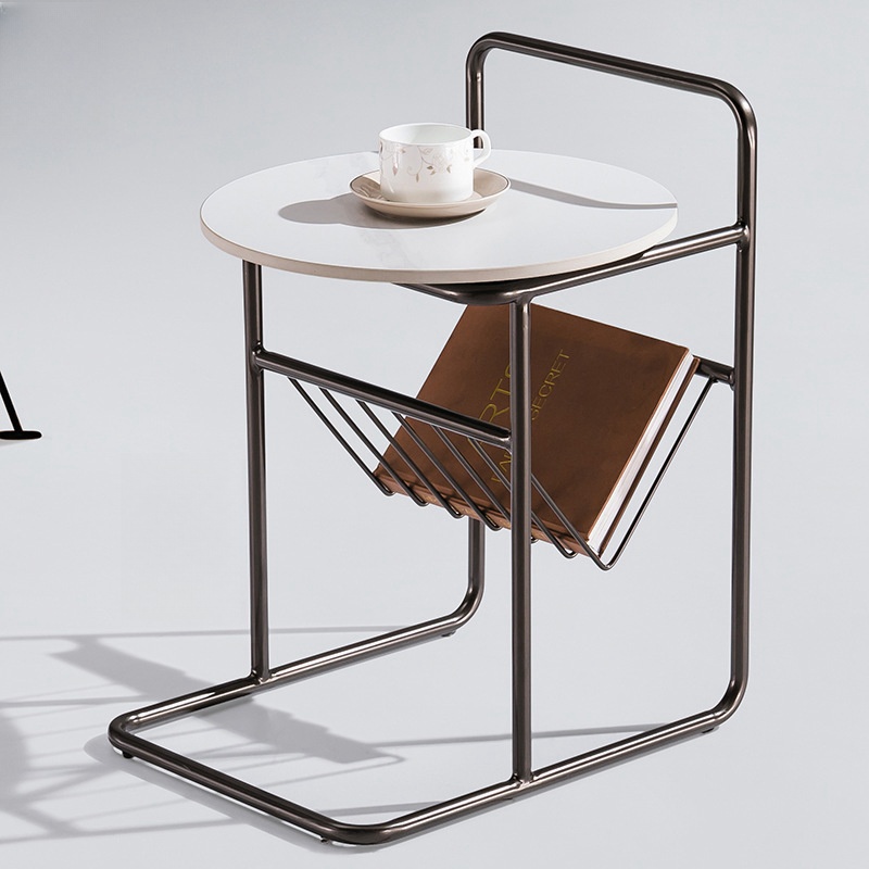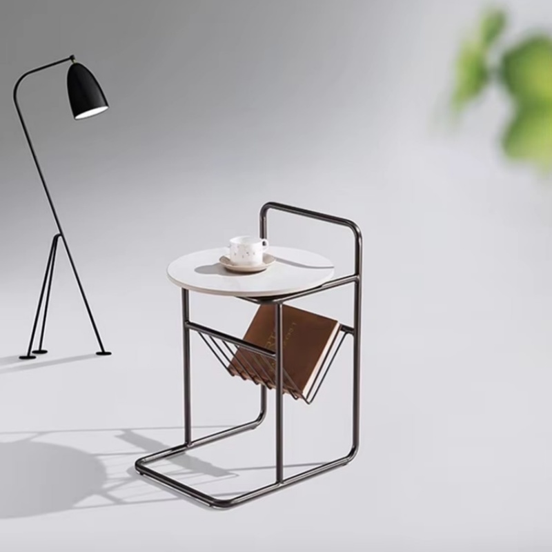 Modern Magazine Stand Living Room Storage Sofa Side Shelf Marble Top Coffee Table