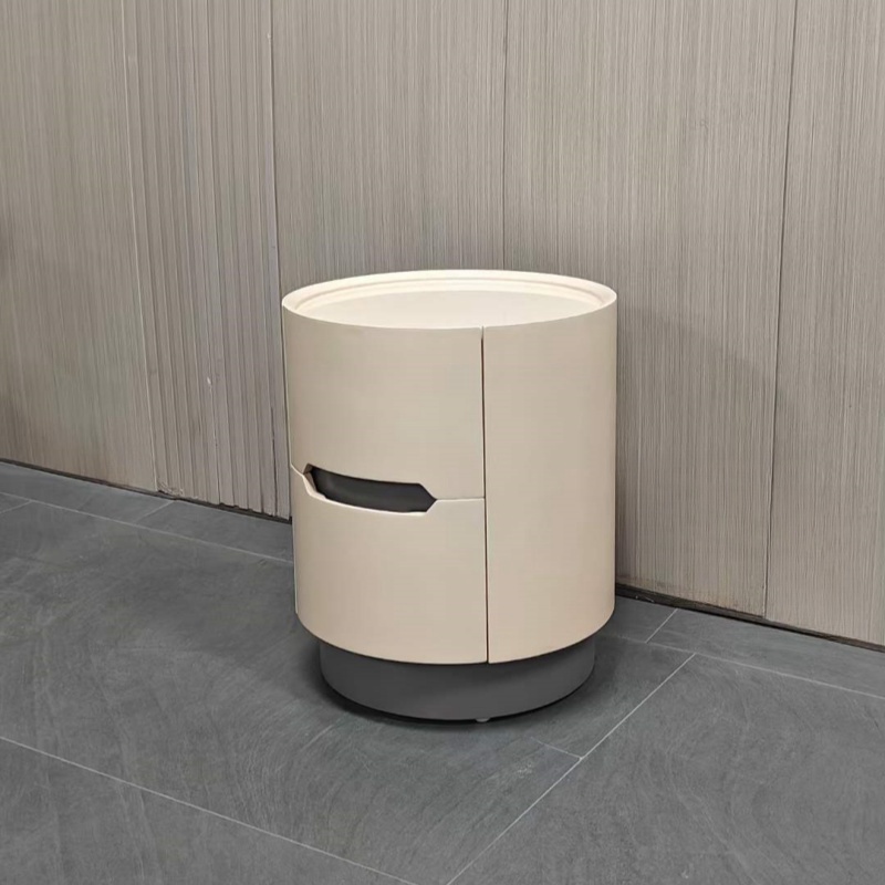 Round End Table 2 Drawers Nightstand Bedroom Storage Table