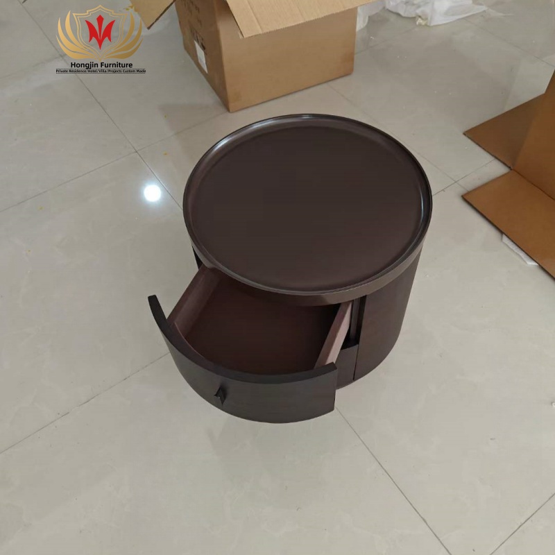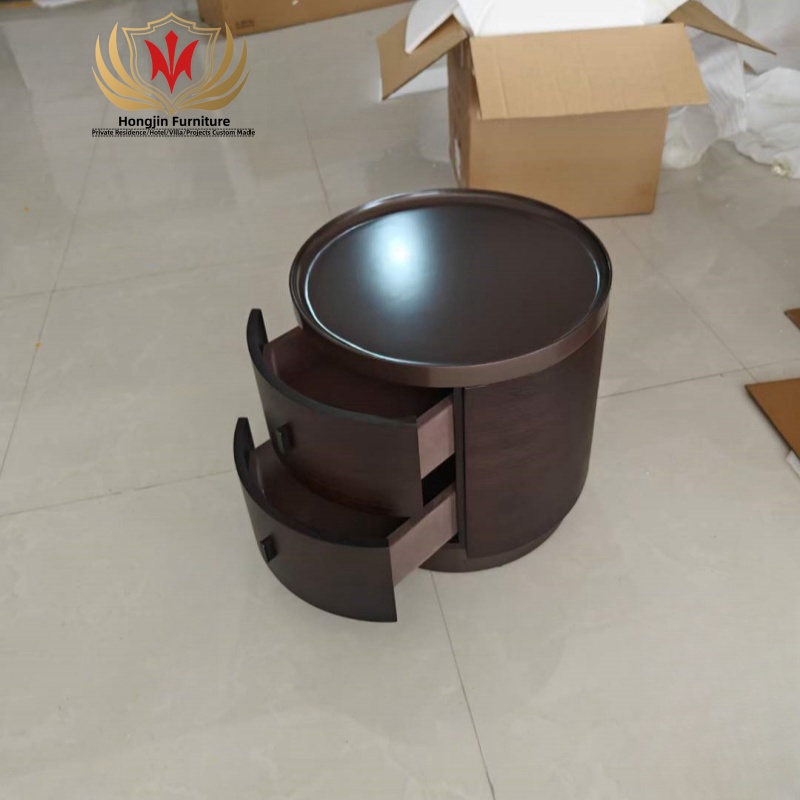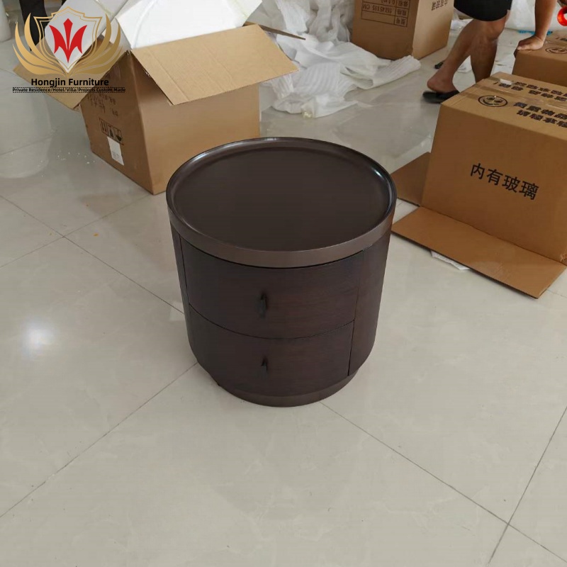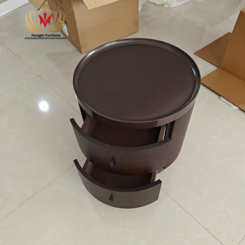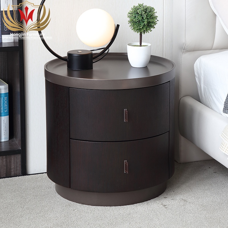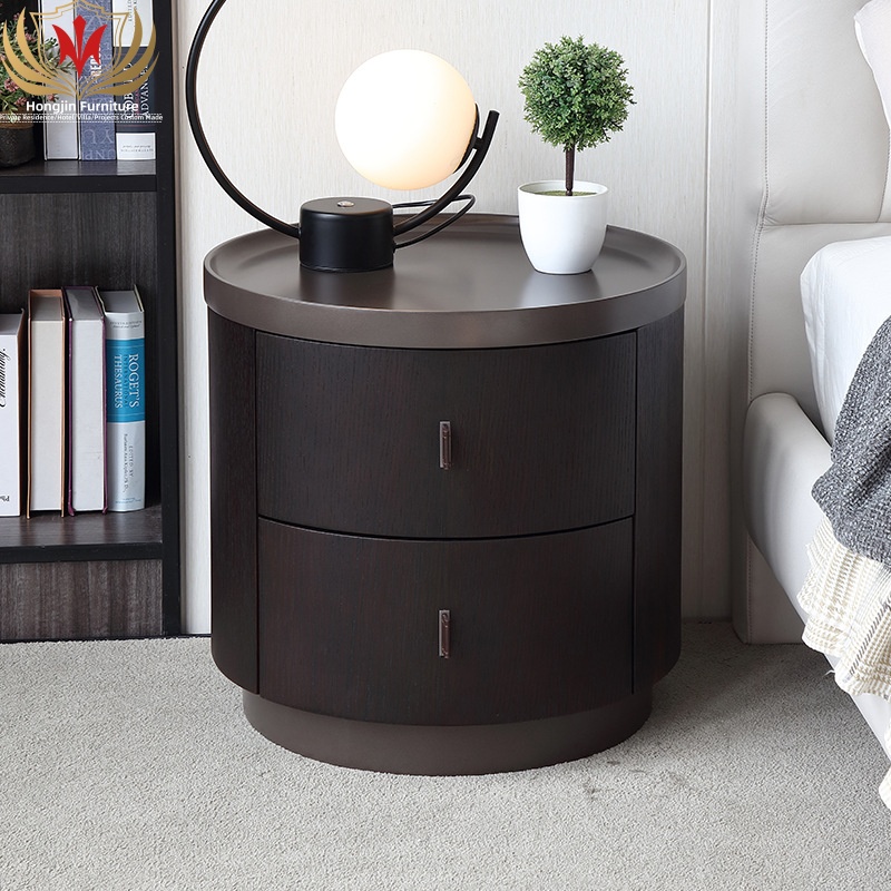 Modern Smoke Black Veneer Solid Wood 2 Drawers Bedside Table